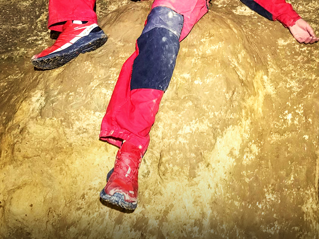 Karena mayoritas medan gua berair, sebaiknya sepatu yang digunakan adalah sepatu boot karet. Sepatu ini selain melindungi dari genangan air, juga akan melindungi dari bebatuan.