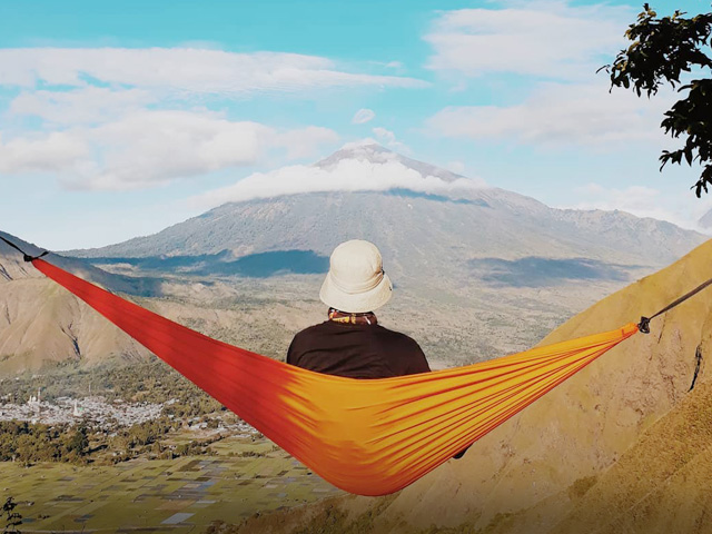 Untuk sampai ke puncak Gunung Rinjani ada dua jalur yang cukup populer, yaitu Sembalun dan Senaru. Tapi kalau nggak sempat sampai ke puncak, sebaiknya jelajahi kawasan Rinjani aja. Banyak kok tempat wisata di sekitar Rinjani. Selain Bukit Mantong ada juga Desa Adat Senaru