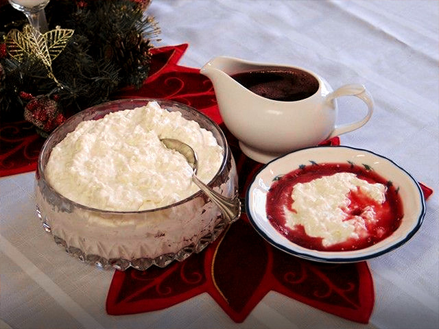 Lalu di Hari Natal, biasanya mereka bakal menyajikan manisan bernama riskrem. Riskrem ini adalah makanan berupa puding beras dingin yang dilengkapi dengan saus berry. Kebanyakan rumah di Norwegia pasti bakal menyajikan satu riskrem dengan sebongkah kacang almond di dalamnya. Konon, siapa pun yang mendapatkannya bakal bernasib baik di tahun depan, bro.