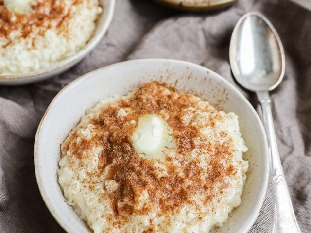 Hidangan ini berbentuk seperti puding beras yang memiliki tekstur kental dan lembut. Untuk menambah kelezatannya, tambahkan juga taburan gula pasir serta kayu manis agar lebih memberikan aroma yang harum.
