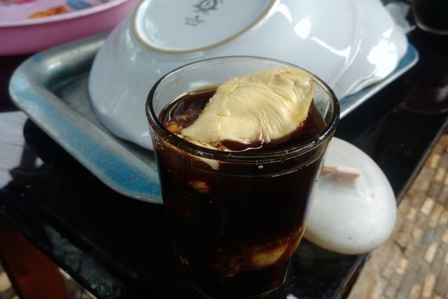Jadi, kalau di Sumatera Utara, kopi robusta hitam dicampurkan dengan kental manis rasa durian. Sedangkan di Sumatera Selatan, rebusan buah durian dicampurkan ke kopi hitam robusta sehingga punya aroma dan cita rasa buah durian tersebut melebur jadi satu.