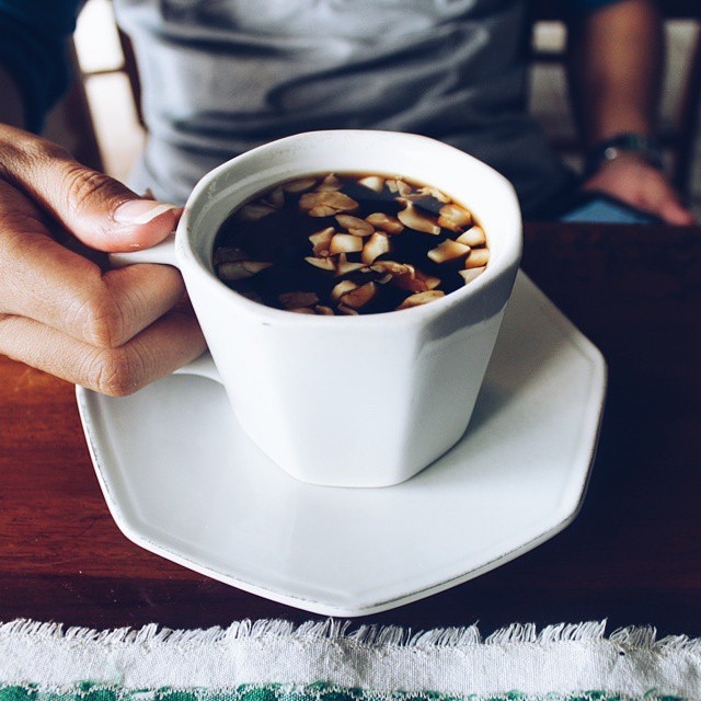 Tapi dari komposisi kopi ini sendiri – lo tidak akan menemukan rasa kopi hitam yang biasa saja. Bagaimana tidak bro – komposisi kopi rarobang adalah kopi hitam yang dicampurkan dengan kacang kenari, sereh, jahe dan cengkeh.