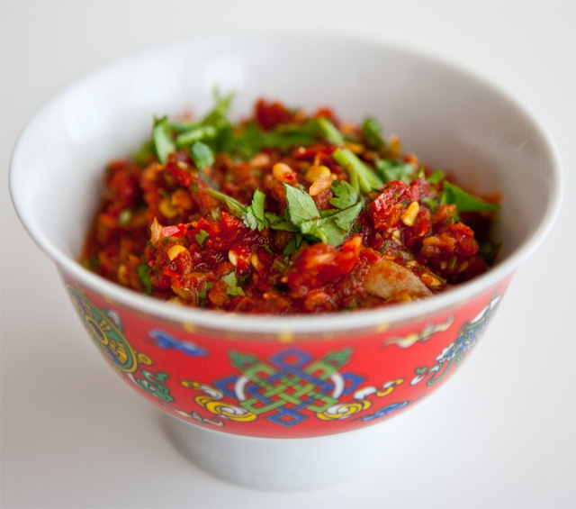 Untuk pilihan kuliner khas Tibet berikutnya merupakan sebuah kudapan yang cocok untuk lo para penikmat pedas. Banyak yang beranggapan pula kalau ini merupakan sambal khas Tibet yang tentunya nikmat serta cocok untuk menemani lauk lo.