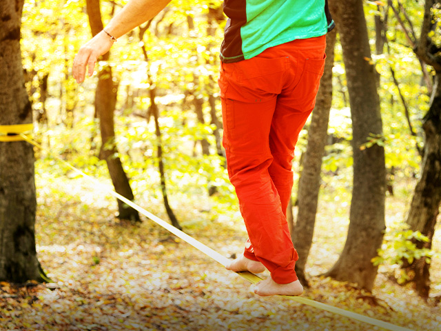 Olahraga ekstrem satu ini sangat menuntut konsentrasi yang tinggi. Slacklining merupakan olahraga untuk melatih keseimbangan dengan cara berjalan di atas seutas tali, yang biasanya menggunakan tali bahan nilon atau polyester anyaman yang dikencangkan antara dua titik jangkar.