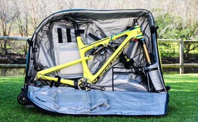 Salah satu tas MTB yang cukup terkenal dan populer di kalangan petualang adalah Evoc’s Bike Travel. Evoc adalah sebuah brand yang mengeluarkan tas, khusus untuk MTB. Tentu, MTB lo tidak semata-mata bisa langsung masuk tas ini karena yang jelas, dua bannya mesti dilepas terlebih dahulu dan ditaruh di kantung terpisah.