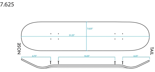 Biasanya deck ini sendiri terdiri atau terbuat dari 7 hingga 9 lapisan kayu yang kuat serta delaminating sedemikian rupa sehingga menciptakan sebuah papan yang tebal. Lebar dari deck biasanya mulai dari 7.25 hingga 8.25 inci. Untuk panjangnya sendiri memiliki ukuran sepanjang 29” dan 33” inci.