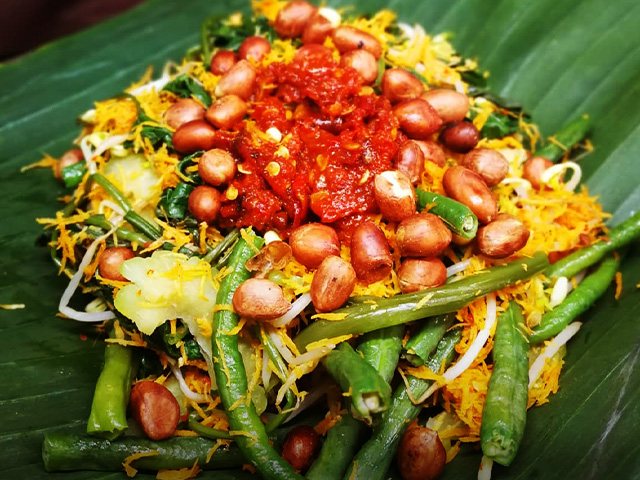 Hobi menyantap sayur-sayuran yang sehat dan segar? Serombotan ini wajib dicoba kalau sedang berkunjung ke Bali! Kuliner khas Klungkung ini menyajikan campuran sayur-sayuran seperti kacang panjang, bayam, kangkung, buncis, terong bulat, tauge, dan pare.