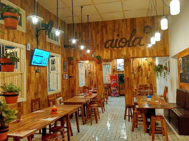 Aiola sendiri terletak di Jalan Slamet, tepat berada di belakang Grand City. Interior dari tempat makan ini juga cukup unik, serta ramah lingkungan loh. Tak heran apabila mampu memberikan kesan tempat yang nyaman, bersih dan higienis.