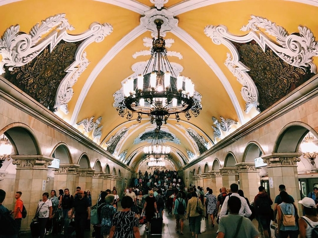 Megah menjadi kata yang tepat untuk menggambarkan jalur Koltsevaya di kota Moskwa atau biasa juga disebut Moskow. Berada di stasiun Komsomolskaya yang dibangun pada tahun 1950an ini merupakan stasiun dengan bentuk arsitektur terunik. Benar-benar menggambarkan kebudayaan dari Rusia.