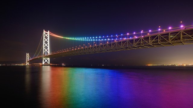 Mendapat predikat sebagai World’s Longest Suspension Bridge dengan rentang 1.991 meter, jembatan ini menghubungkan Maiko di Kota Kobe dengan Kota Awaji di Pulau Awaji. Selain itu, jembatan ini mempunyai dua buah taman untuk berwsata yang letaknya saling bersebrangan.