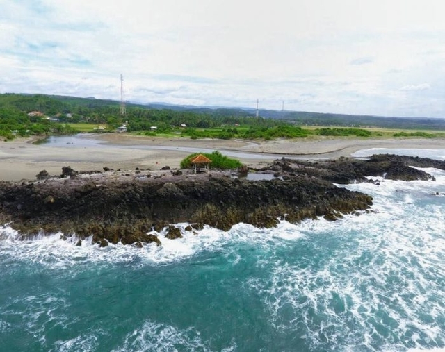 Hal tersebut terkait dengan batuan karang di tepi pantai yang banyak dan tersebar merata. Buat lo yang datang ke sini, perhatikan ada tebing karang yang tinggi dan ternyata ada curugnya di sana. Wah indah sekali deh, bro!