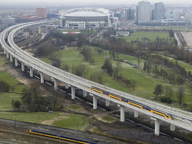 Stasiun kereta api Bijlmer Arena di sebelah stadion dan bisa dicapai sekitar 15 menit dari Stasiun Pusat Amsterdam. Sedangkan, jaringan kereta Metro biasanya bakal memakan waktu sedikit lebih lama dan berhenti di stasiun yang sama serta stasiun Strandvliet/Arena yang terletak di sisi utara stadion, Superfriends.